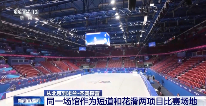 总台央视记者 郑怡哲:在2026年米兰-科尔蒂纳冬奥会期间,米兰滑冰馆将举办短道速滑和花样滑冰比赛。这个造型古朴的建筑内部经过了现代化改造,已经变成了一个可以容纳超1万名观众的场馆。